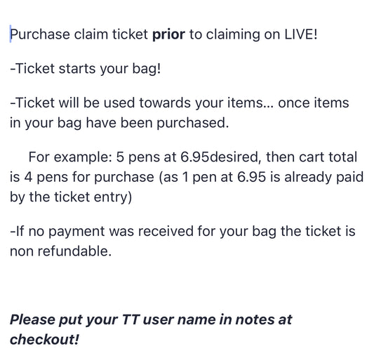 Claim Ticket - Live Only